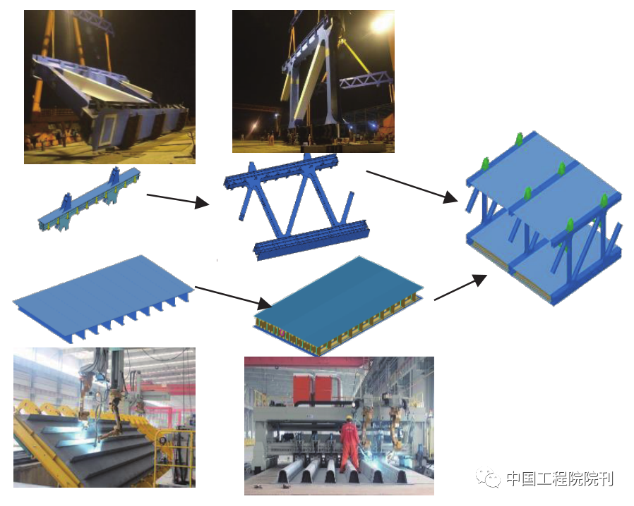 快速施工、无人化或少人化施工、工厂化施工、高质量施工将是未来施工技术的发展方向,这些技术均要求铁路钢结构实现更高程度的装配化,特别是整体结构的装配化(见图4)。