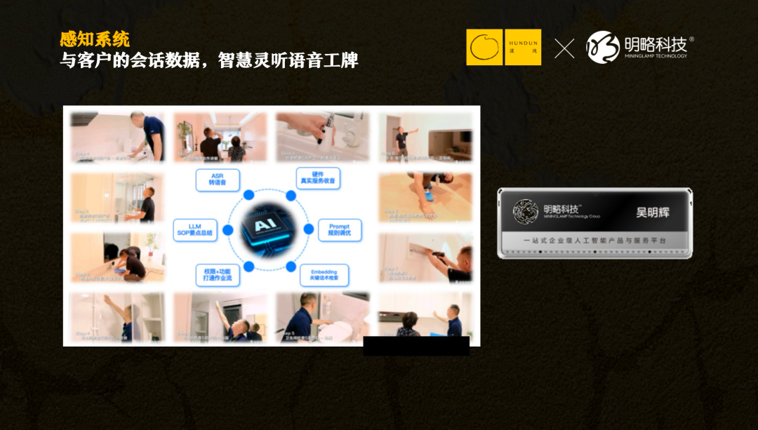 贝壳给每一个工长胸前佩戴了工牌,这个工牌其实是个录音笔,它可以记录工长每天在装修现场的实际情况,更重要的一点,它可以如实记录工长是否按照公司标准的SOP进行操作,是否认真负责地检查每一个环节,如何应对客户的各类投诉。工牌所带回来的数据还要进行分析,后台管理系统自动执行脱敏、语音转写、语音识别等操作,实现线下沟通过程在线化。这些信息非常宝贵,很多门店都苦于缺少有效的销售话术,但如果通过智能会话分析销冠的话语,赋能一线员工,每个人都可以成长为销冠,这种方式非常有效。