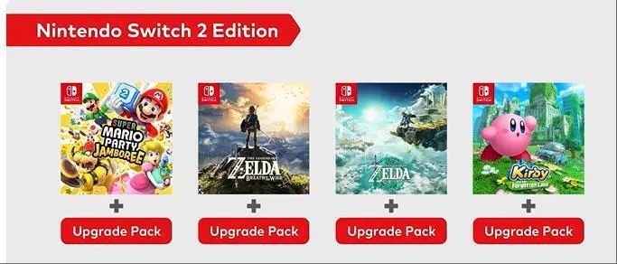 已拥有NS版本的玩家可以选择付费升级至Switch 2版本。此外,《塞尔达传说旷野之息》《塞尔达传说王国之泪》《星之卡比探索发现》等热门作品也将推出Switch 2加强版,以充分利用新硬件的性能提升。