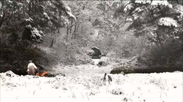 奶奶慢慢起身离开,可总是边走边回头,像是总也放心不下爷爷自己一个人呆在这茫茫的雪林中。