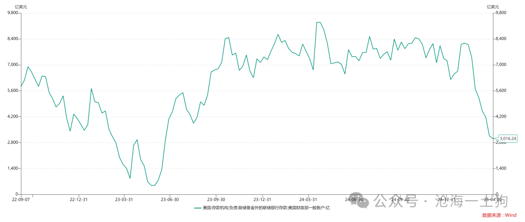 然而,财政部账户上的头寸毕竟是固定的,早晚要坐吃山空。目前,账户上的现金已经从8000亿美金的水平降低到3000亿美金的水平。