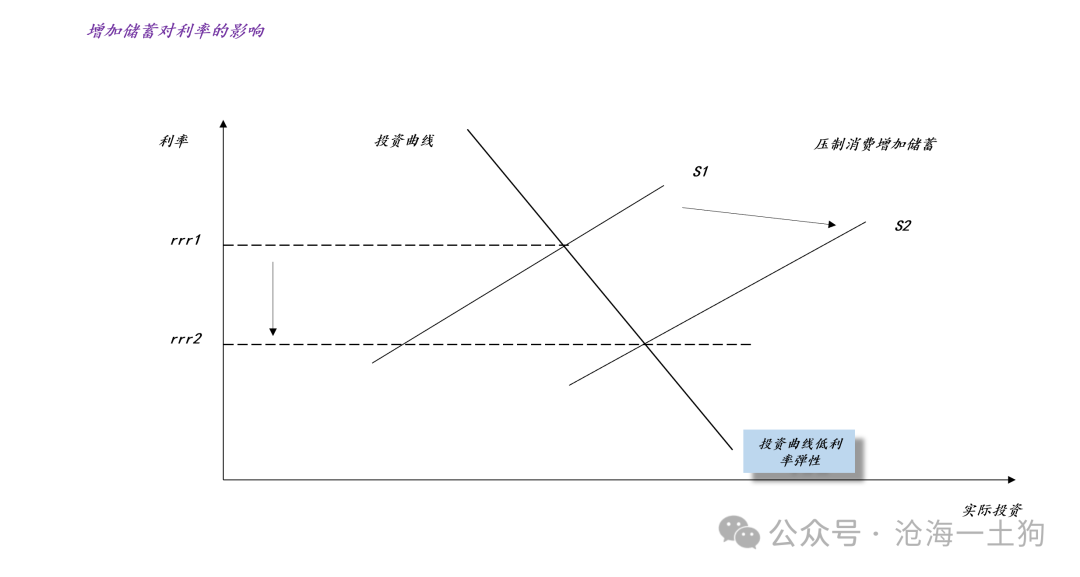 由于特朗普政府所征收的“类消费税”是用来化债,所以,对应于普通家庭的场景为削减消费C,所以,整个系统的储蓄曲线扩张,十年美债利率下行。