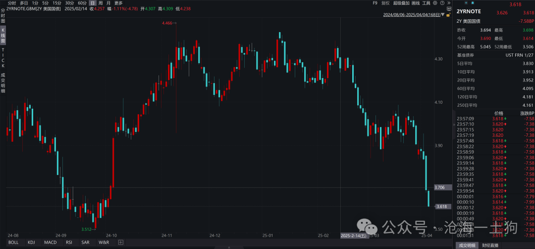 同样的逻辑,只要美国的贸易逆差持续收缩,美联储也必然会扩大降息规模。目前,两年美债利率已经来到了3.65%附近。
