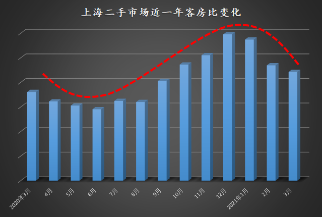 这个数据是最能够表现市场热度情况的,其实在3月底那一场特殊的违规房源下架的行动之前,上海的整体挂牌房源是在增加的。