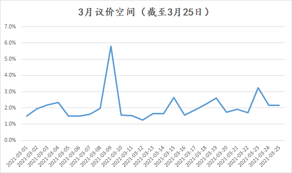 3月的议价空间最后停留在2%左右,这个其实是非常少的一个空间了,比去年年底还要少。