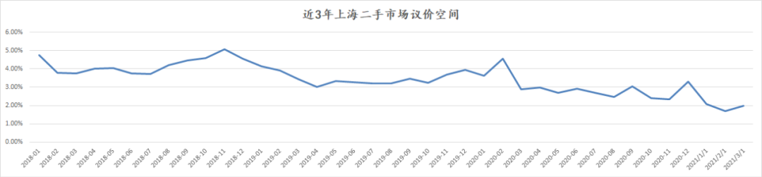这里要先说明一件事情:议价空间是一直存在的,因为我们只是用挂牌价减去成交价。如果房东要涨价了,那就是挂牌价的调整,而不是说议价空间变成负数,这个先和大家报备一下。