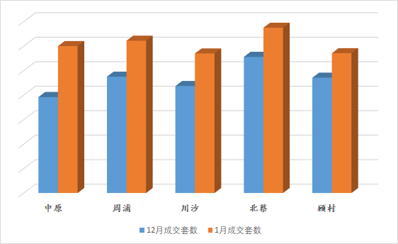 不过这几个板块,算是常年在上海板块成交中霸屏的了。比较新鲜的一点的数据是,我们发现从去年12月到今年1月,成交套数的涨幅比较靠前的5个板块分别是: