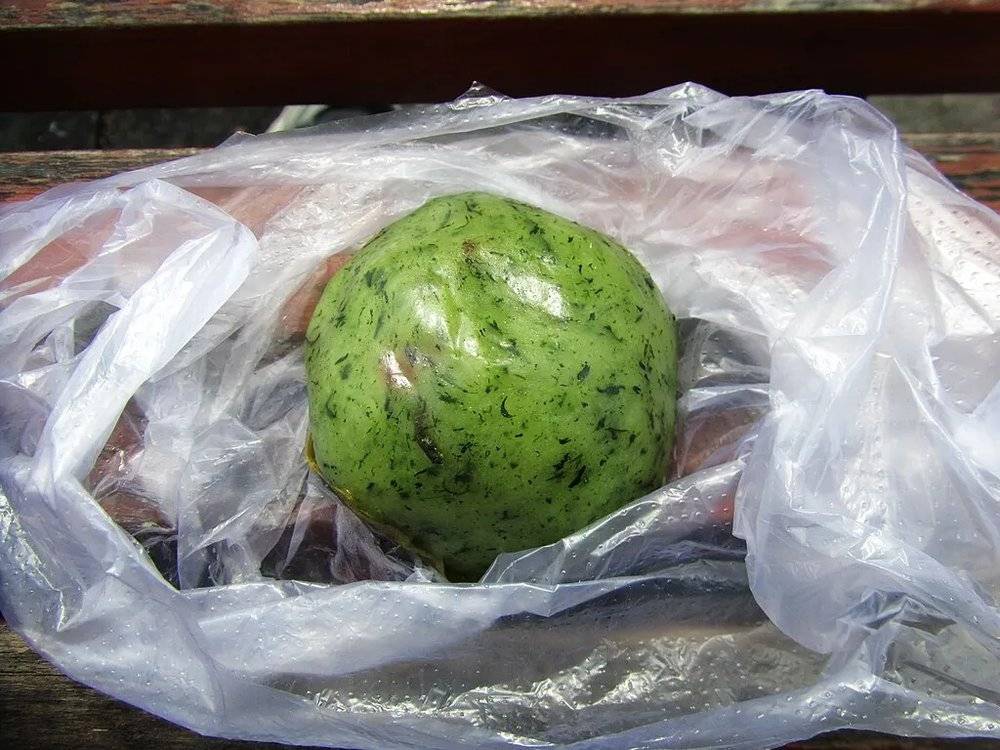 能看到艾叶纤维的新鲜青团丨wikimedia commons/猫猫的日记本