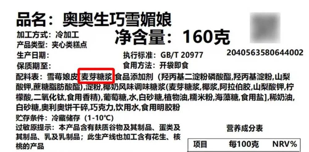 同样是糯叽叽,雪媚娘皮的主要原料之一也是麦芽糖浆丨电商截图