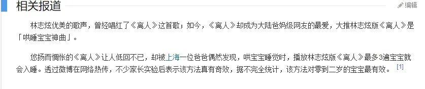 然后又有人传来了《离人》的“百度百科”词条,里面有这样一句: