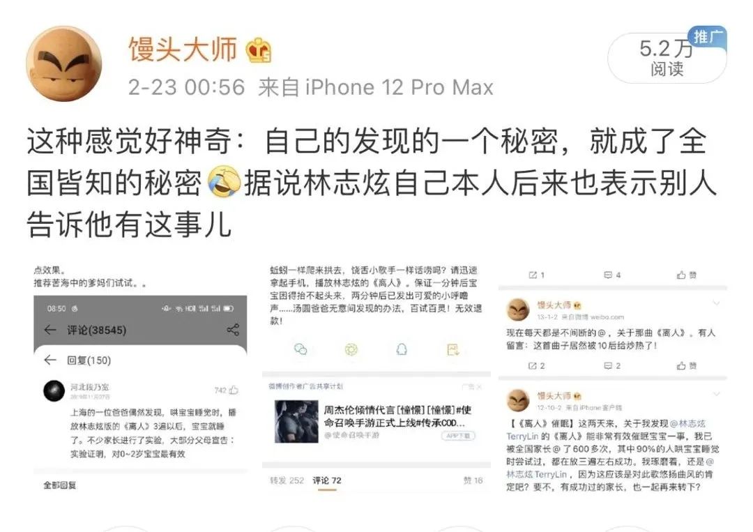 唱不动的时候,我就会给她放一点手机里的歌曲,那段时间正好在听林志炫的《离人》,放了,然后就发现了这个神奇效果。