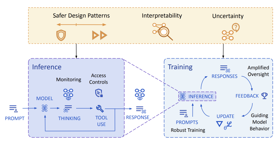 总的来看,DeepMind并没有提出颠覆性的方式,基本沿用传统深度学习中训练-微调-部署-监控的逻辑,主张的不是“永远不出错”,而是构建结构性的缓冲层,把单点失败变成多级阻断。