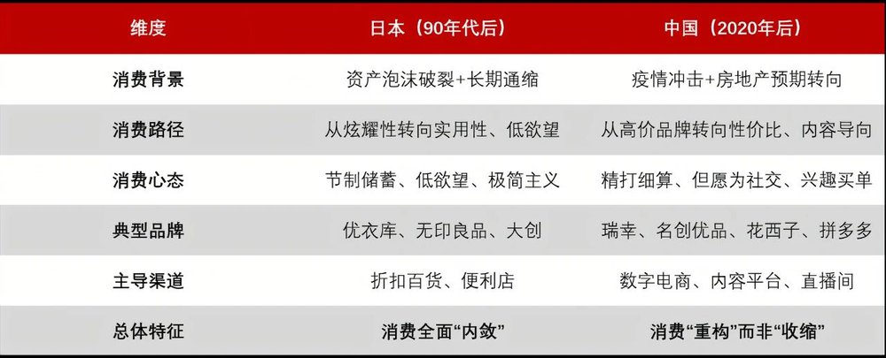 90年代初,日本泡沫破裂,居民资产缩水,奢侈性消费骤冷,被平价实用主义迅速替代。优衣库、无印良品、大创等品牌在此期间崛起,成为“降级消费”的代表。表面是价格的压缩,本质却是消费观的一次自洽重启——以“够用即好”、“功能即美”为核心,形成了日本独特的极简消费文化。