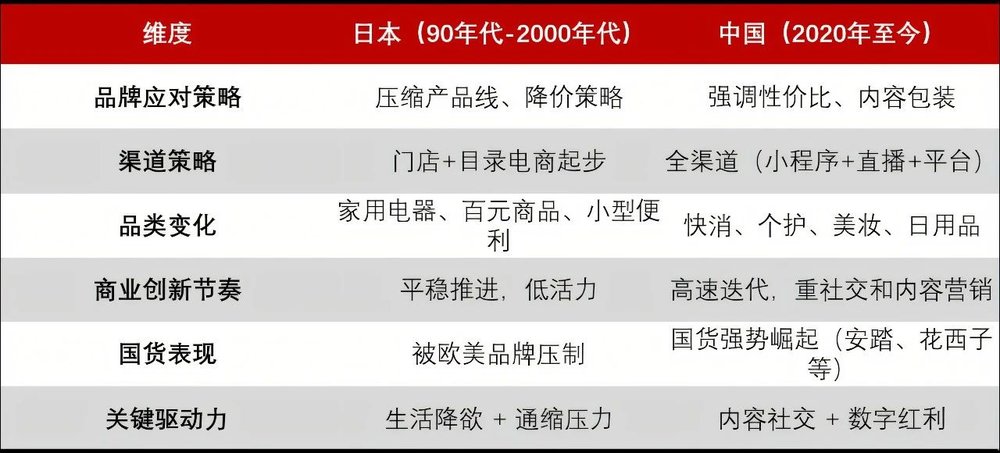 日本在“失去的三十年”里迎来一批极具代表性的性价比品牌:优衣库用基础款掀起服饰界的实用主义革命,大创以“100日元”占领了每一个生活场景,堂吉诃德把“杂乱陈列”变成一种猎奇体验。它们满足了通缩环境下的实用主义、价格敏感与低欲望心理。