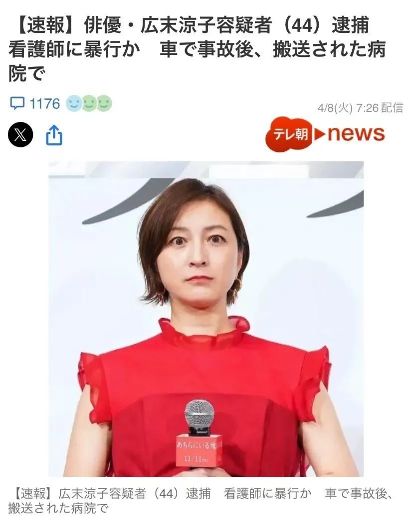日本知名女演员广末凉子今天(4月8日)登上了新闻头条,不过这次并不是因为新作品,而是因为一起突发事件。根据静冈县警方的通报,她因涉嫌在医院伤害一名护士,于当天凌晨被警方逮捕。目前案件仍在进一步调查中。