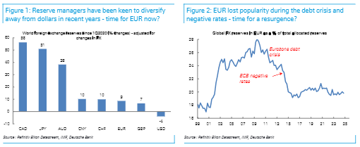 德意志银行策略师Tim Baker在其4日发布的报告中指出,欧元正在成为美元的一种“替代品”。