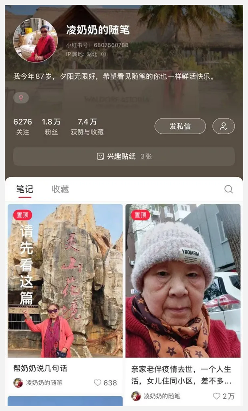 或许,也是因为这样,越来越多年轻人开始关注老年博主,把自己的情感寄托在他们身上,小红书博主“凌奶奶的随笔”就是其中之一。