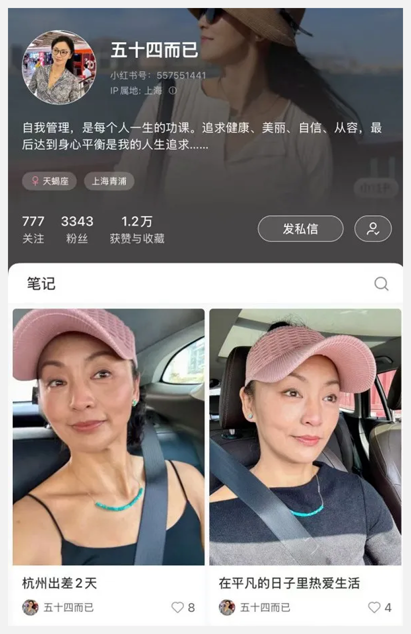 除了小蝉姨,算法经常还会为她推荐一些分享退休生活的老年博主。每每看到屏幕上的银发老人们悠闲地去上老年大学,穿着精致的旗袍走秀,从容地做自己想做的事情——去写诗,旅游,篆刻……她总是羡慕不已,对衰老的恐惧渐渐淡去,取而代之的是对理想退休生活的向往。