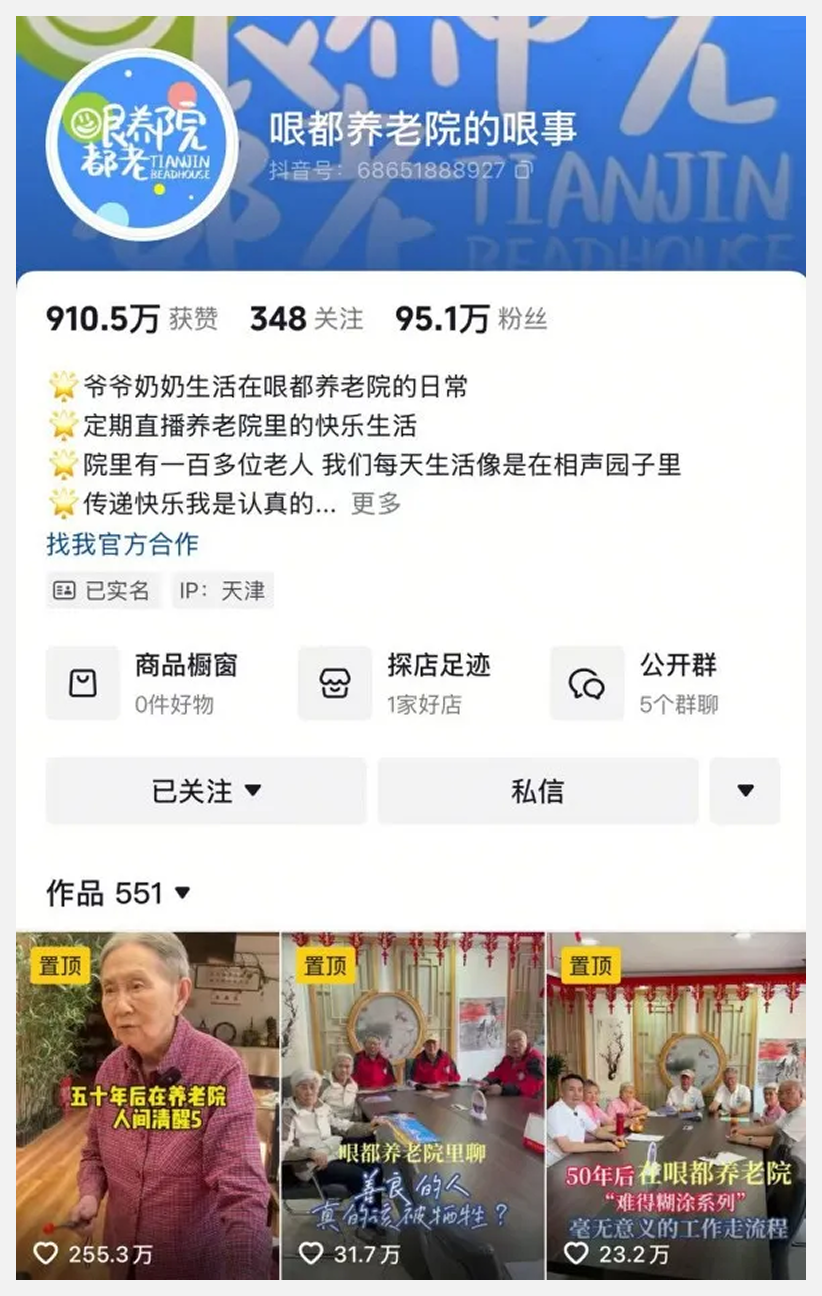 短视频行业的兴起,让部分老人找到了新的身份认同。冯导在养老院拍摄短视频时发现,许多老人仍有社交需求和学习新事物的愿望,愿意尝试短视频创作。