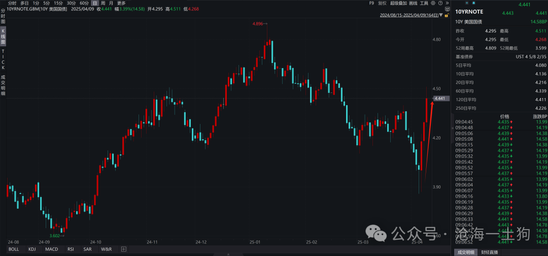 近期,关税战导致美股大幅下跌,于是,相反的链条起了作用,十年美债利率大幅反弹。
