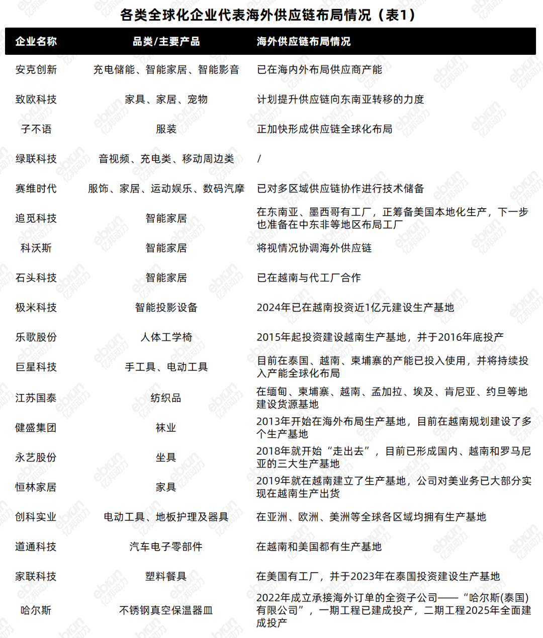 相比于这几家采用“自主研发+外协生产”模式的跨境玩家,一些有自有工厂、更多参与到生产环节的品牌,则在供应链全球化布局上更为积极。