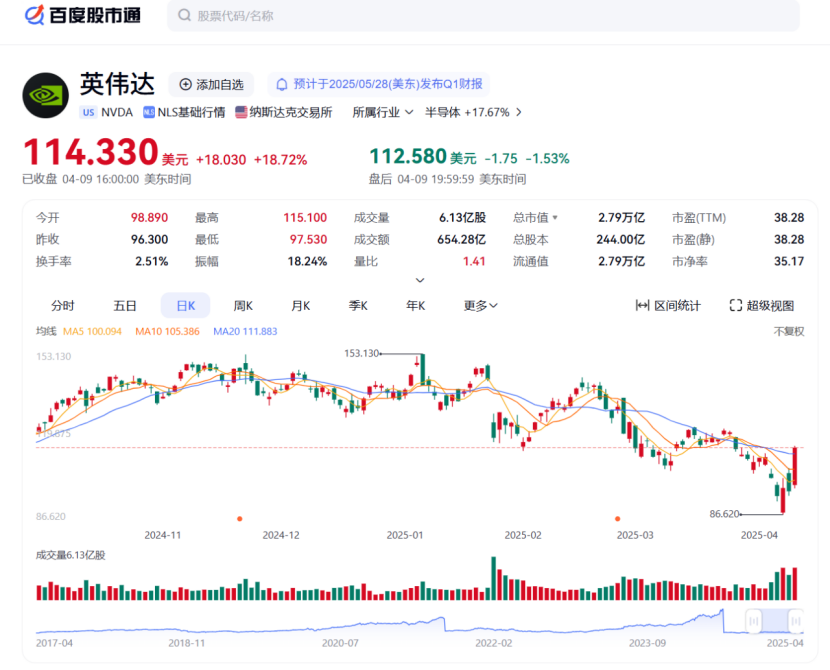 先别急着为英伟达高兴。实际上,在今年初达到140美元的高位之后,英伟达的股价就一直处于巨大的震荡之中。就在前一日,还下探到了97美元。而这种震荡当中,很大的一个因素正是地缘政治与供应链风险。