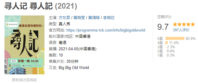 《寻人记》是4月刚开播的一档香港综艺,由TVB出品。