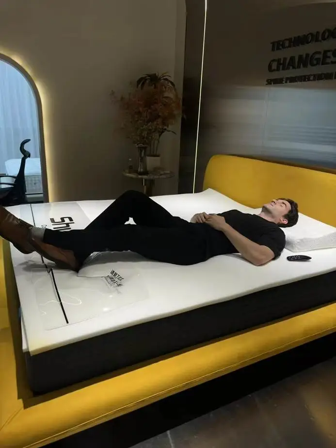 (图为丁肯在试用一张中国产薄垫,图源:丁肯供图)