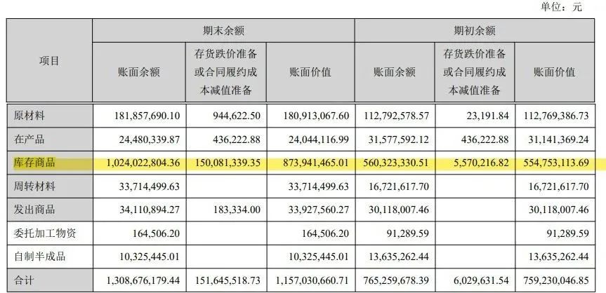 2020年末,存货中的库存商品(产成品)从上年同期的5.6亿增长到10.2亿,同比大增92%,公司为此还计提了1.5亿的存货价跌准备。