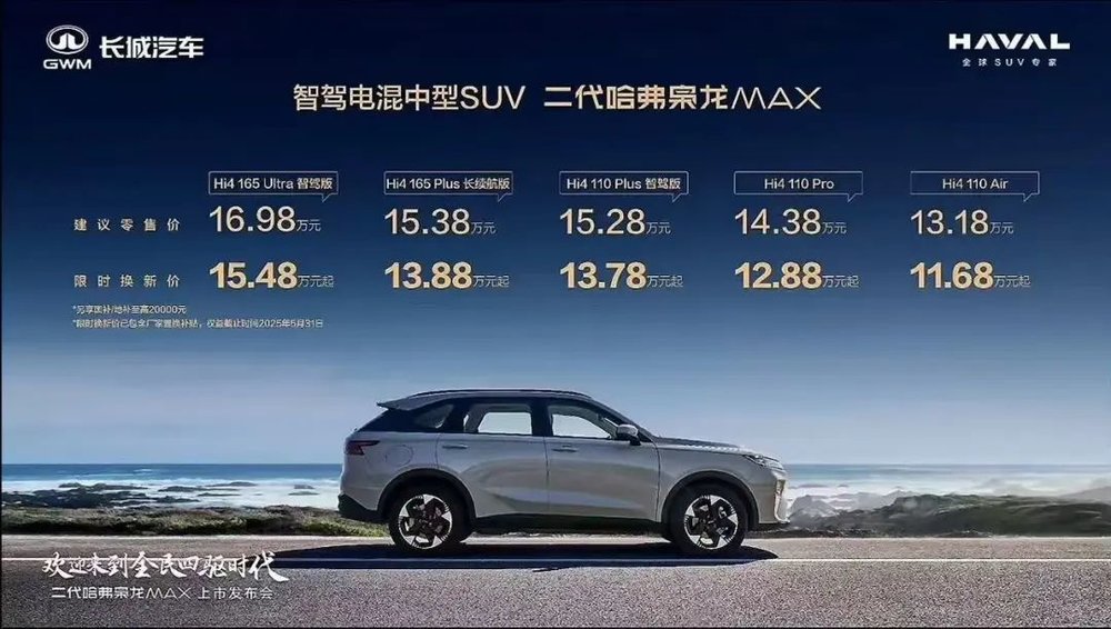 真正的革命,也悄然发生在成本端。4月16日晚,二代哈弗枭龙MAX正式上市,全系标配第二代Hi4四驱系统,建议零售价13.18-16.98万元,限时换新价只要11.68-15.48万元。