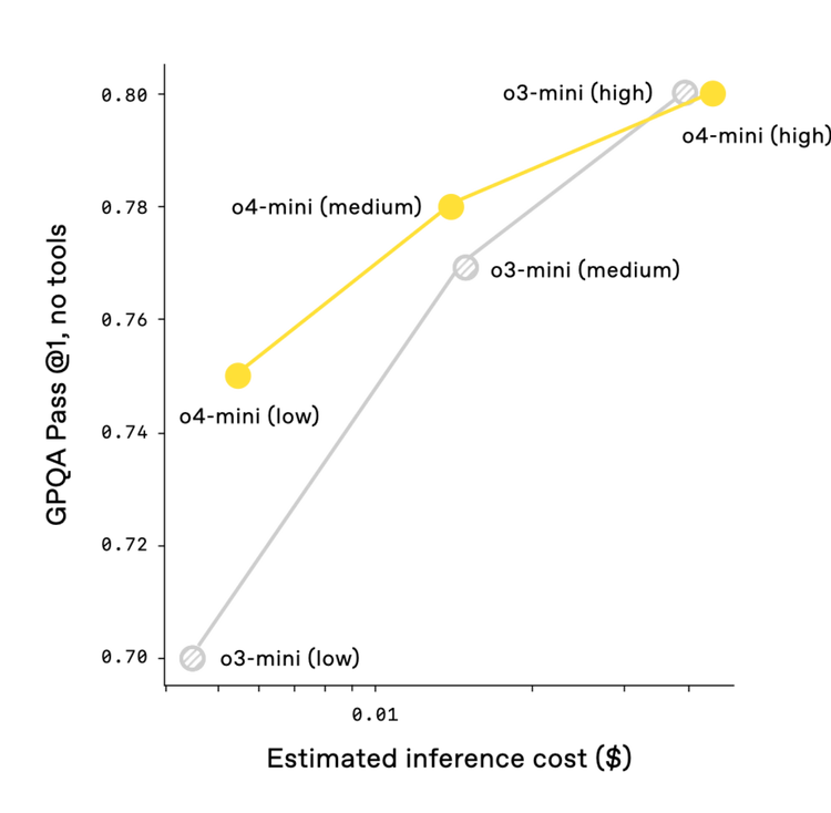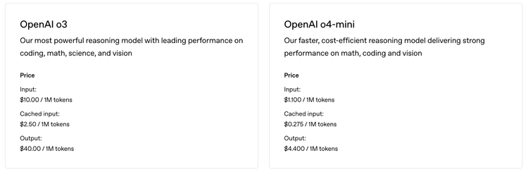 在定价方面,o3的每百万输入token收费为10美元,输出token为40美元;而o4-mini的价格仅为其十分之一左右,分别为1.1美元和4.4美元。