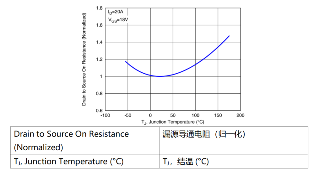 下图为650V SiC MOSFET导通电阻与结温的关系。(结温为175℃时的导通电阻比室温时的导通电阻高1.5倍。)