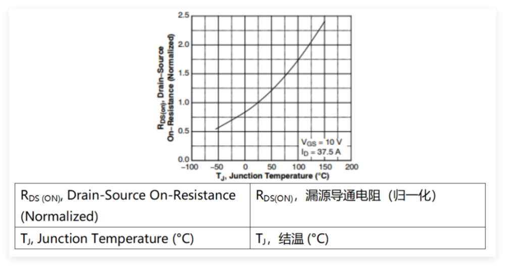 同样,下图为650 V超级结MOSFET的导通电阻与结温的关系。结温为175℃时的导通电阻比室温下的导通电阻高2.5倍以上。
