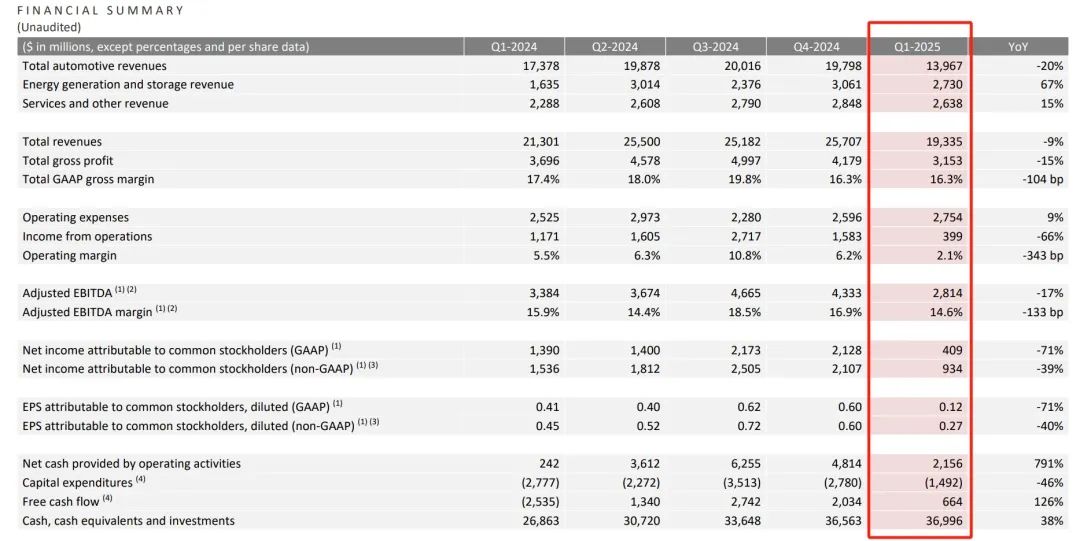 财报显示,特斯拉今年一季度实现营收只有193.35亿美元,市场预期为213.48亿美元。与过往业绩对比,公司去年一季度的营收为213亿美元,去年四季度则为257亿美元。