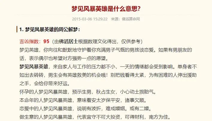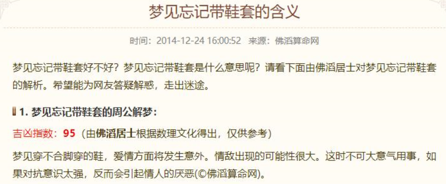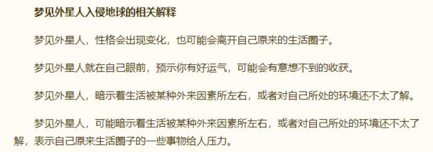 这说明解梦结果不是自动生成的,也不是单纯的关键词抓取,可能是将网上的各种解梦信息收集拼凑而成的结果。