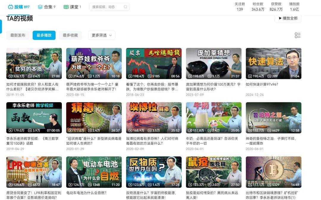 截至2025年,李永乐创作的科普视频累计超450个,全网播放量超10亿,其作品被网友称为“永乐大典”——与明朝《永乐大典》形成文化意象的跨时空呼应,而他也由原来单纯的物理老师变为泛文化领域现象级的网红代表。