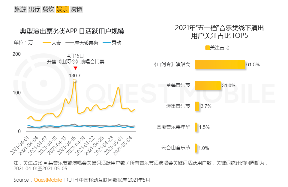 4.2 主题演唱会、音乐节、话剧等线下娱乐演出在“五一”假期集结,演出票务类应用流量增长显著。