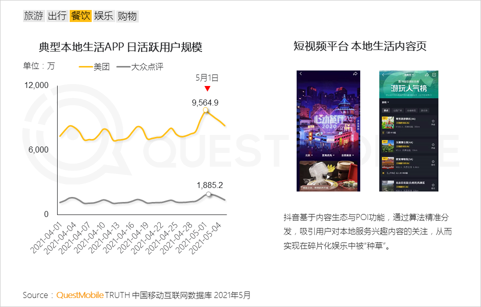 3.1 旅游出行的火爆带动餐饮消费提升,本地生活服务应用流量增长的同时,短视频平台从兴趣内容切入,基于视频内容达成本地服务的匹配,为品质餐厅出圈增添新途径。
