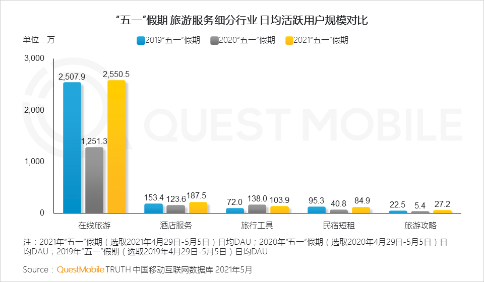 2. 与2020年“五一”假期流量相比,旅游服务多行业已回归常态化增长。