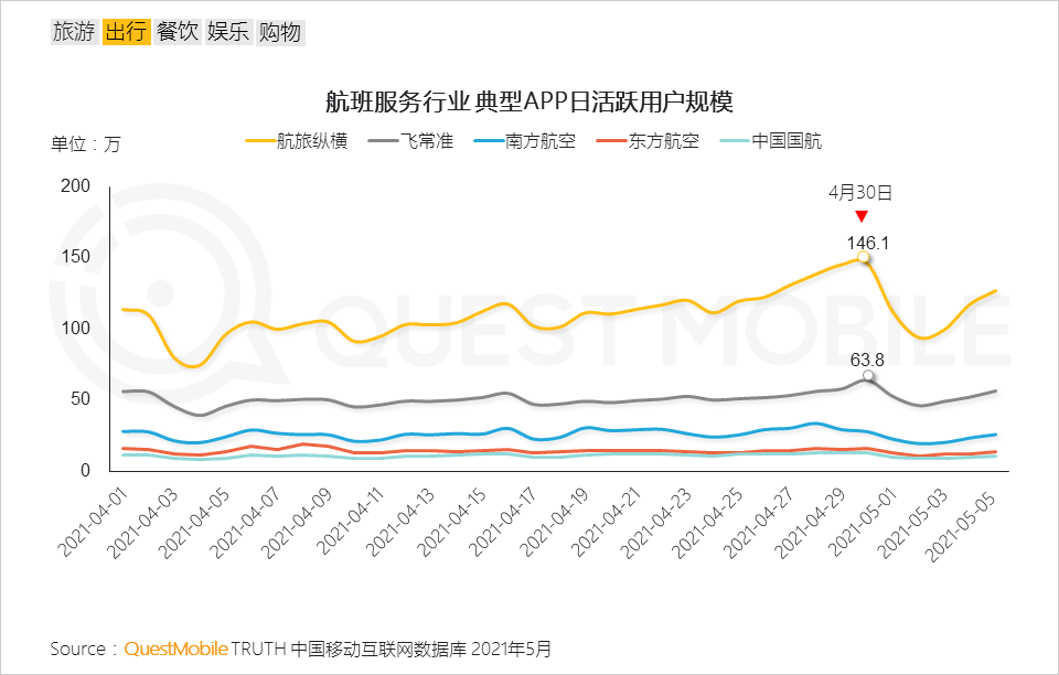 2.3 与火车出行相似,航班服务类APP也在“五一”假期前夕迎来流量增长峰值。
