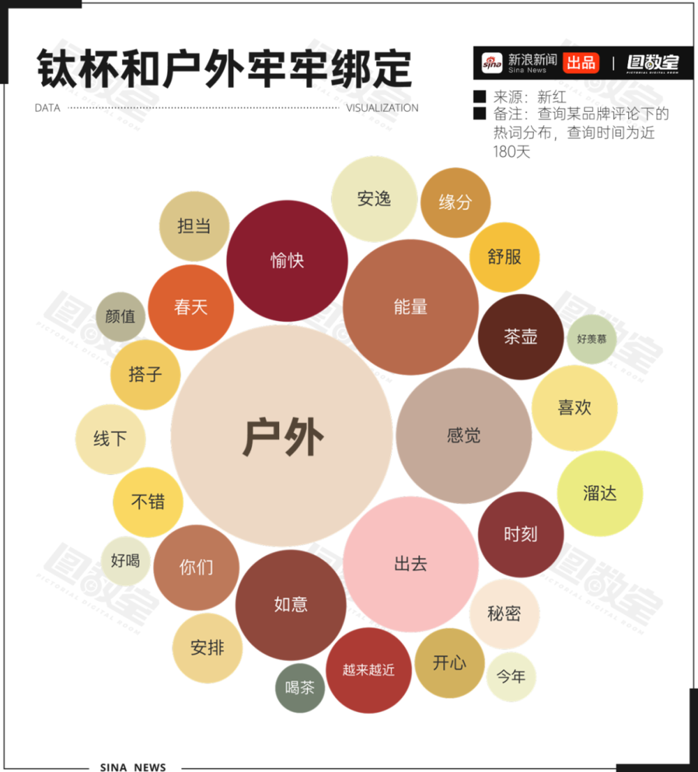 在某社交平台下搜索某钛杯品牌,图数室整理分析评论区的热词发现,热度最高的词就是“户外”。