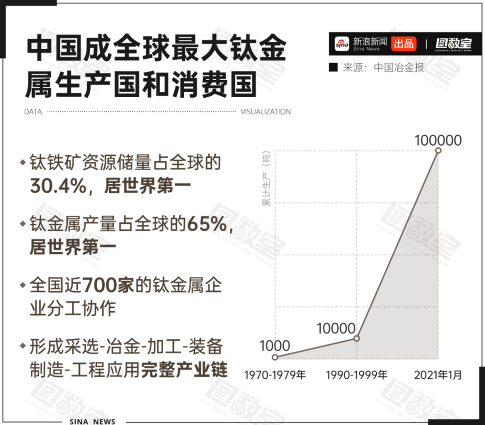 我国钛资源禀赋充足,具备支撑钛工业发展的物质基础。从2006年开始的,中国钛工业首次实现产量激增,成为全球最大的钛生产国与消费国。以前钛是“上天入地”的材料,现在连保温杯都能沾光,自然被视作一种“高端”材料。