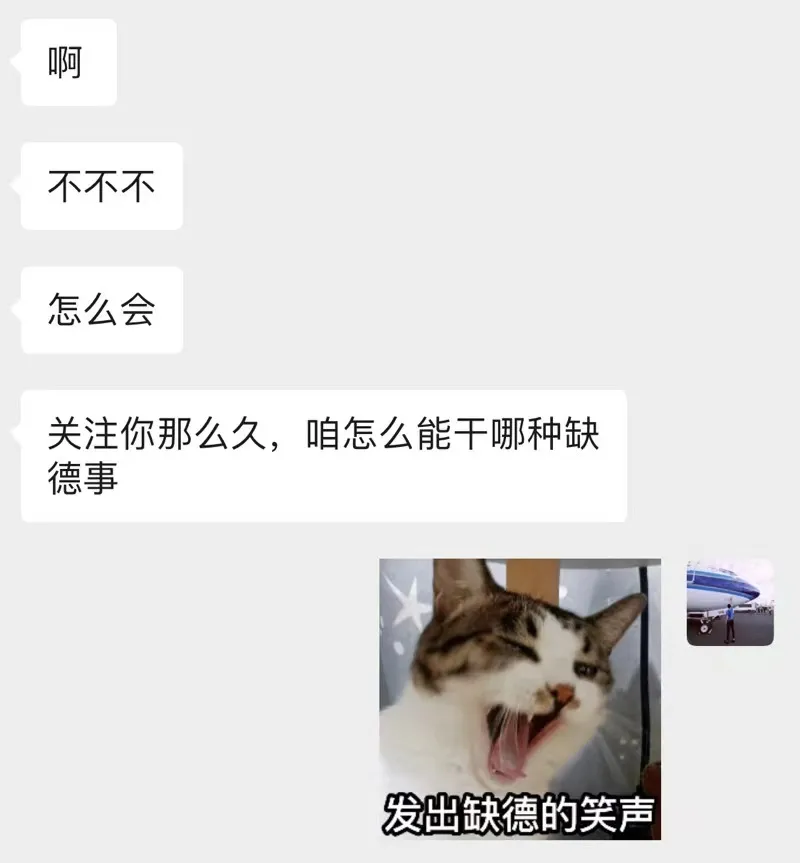 其他类似的选择还有很多,比如“抱歉,我老公不让我加旅客的微信。”这句话很严肃,不过拒绝的意味也非常明显。但就怕碰上那种无赖: