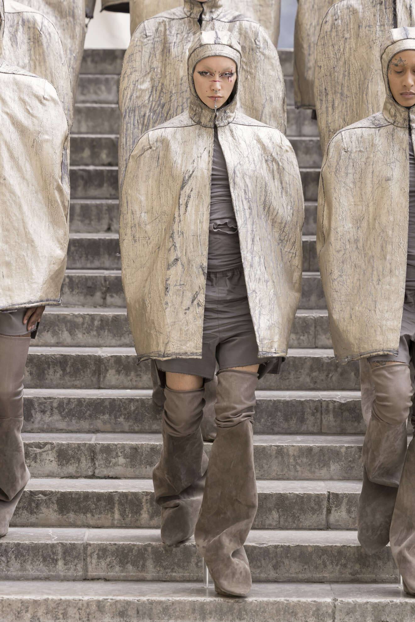 现在,我们仍旧可以在时尚走秀上看到这种流行趋势,Rick Owens就是很好的例子。作为一个不断挑战传统美学观念、推动时尚界包容性的设计品牌,穿刺是他本人一直青睐的装饰方式。