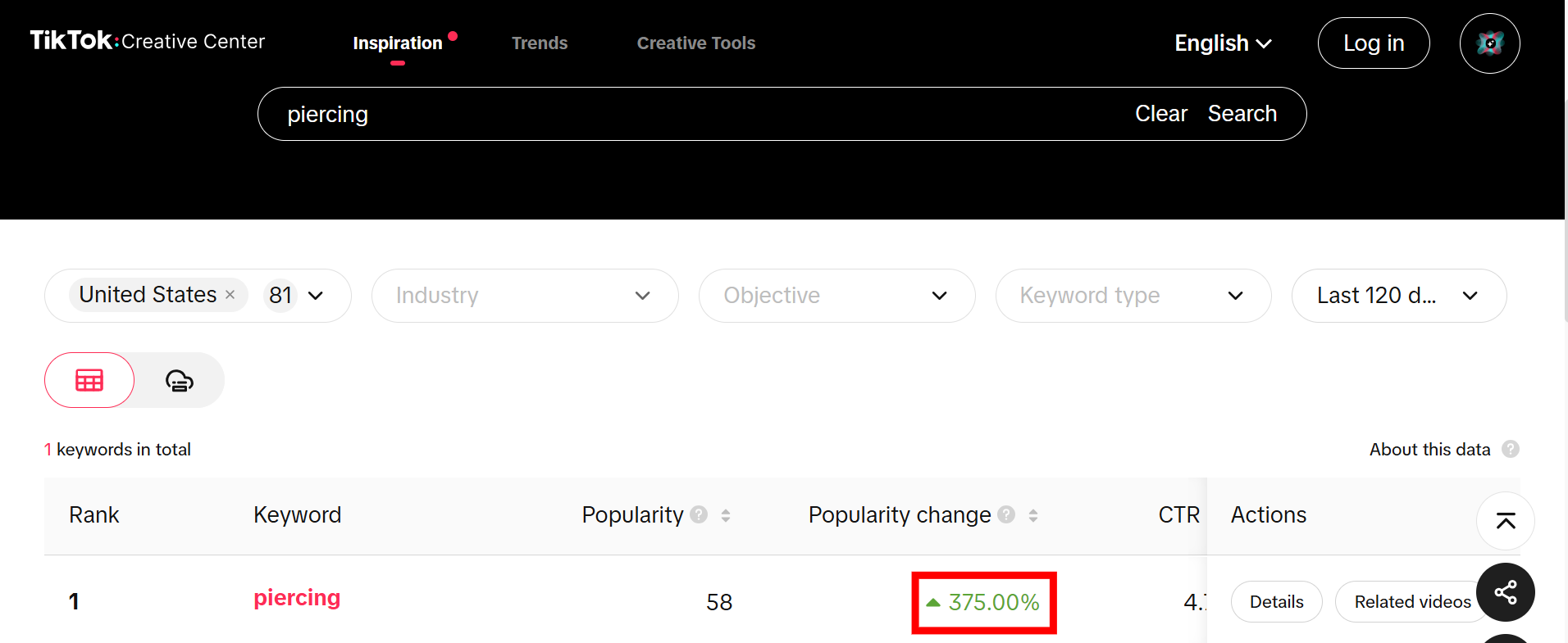@TikTok的数据显示,全球81个国家中,人在过去4个月里对“穿孔”一词的搜索量增长了375%。