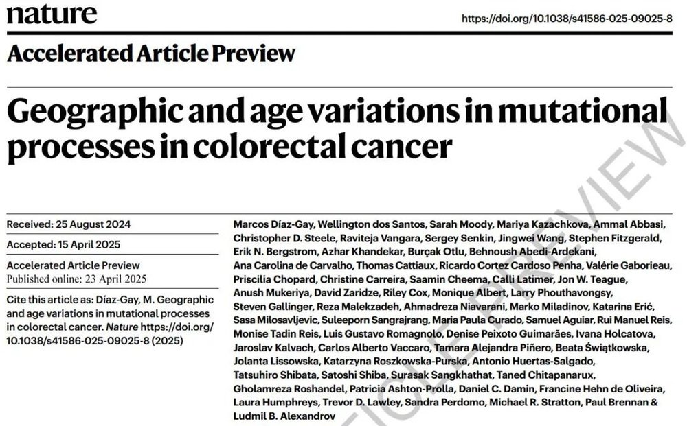 [1]Díaz-Gay,M.et al.,Geographic and age variations in mutational processes in colorectal cancer.Nature(2025)https://doi.org/10.1038/s41586-025-09025-8