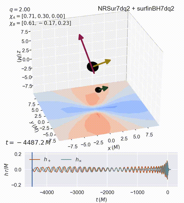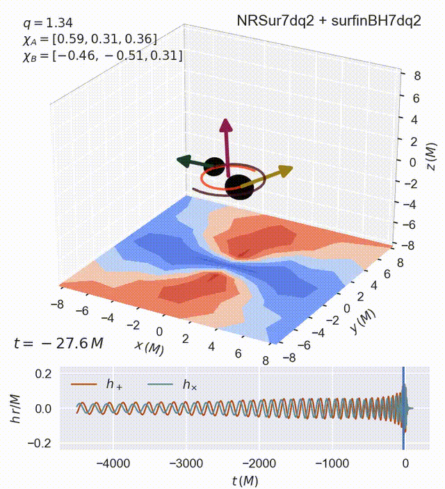 这是由加州理工学习博士Vijay Varma开发的一款Python包,用于模拟两个黑洞在旋转过程中如何对外辐射引力波,以及它们合并的全过程。