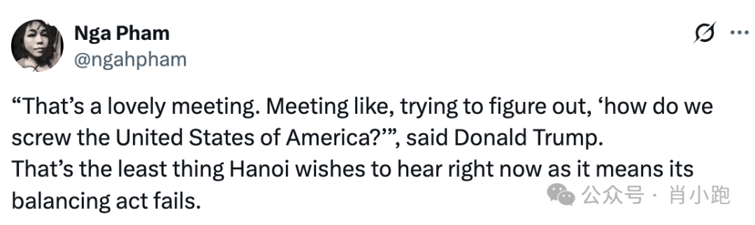 (越南最怕听到的:“我不怪中国,也不怪越南,我看到他们今天在开会……是一次愉快的会面。他们开会,似是在讨论‘我们该如何搞垮美国’。”)