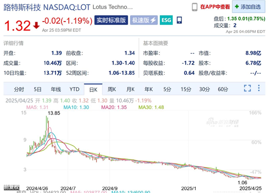 截至发稿,莲花品牌股价为1.32美元,较一年来最高值13.85美元已下跌90.5%。