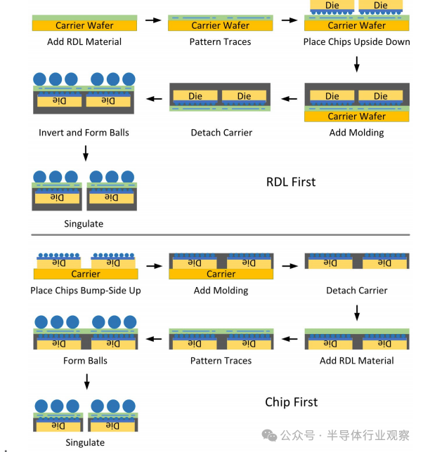 这是总体思路,适用于大多数先进封装.但是,许多元件都可以起到重新路由信号的作用,包括中间膜和封装基板.从技术上讲,这些都是RDL.但RDL一词似乎有更具体的用法,指的是在裸片金属层上方添加路由层,在裸片钝化后添加,或在裸片背面添加,重新路由硅通孔(TSV)。